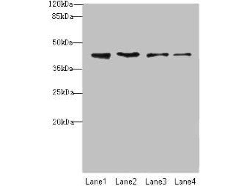 Aliases: NUP43Nucleoporin Nup43 antibody, Nup107-160 subcomplex subunit Nup43 antibody, p42 antibody