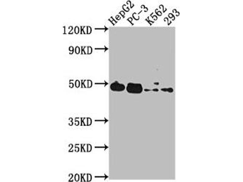 Aliases: C3orf9 antibody, CAP10 like 46 kDa protein antibody, CAP10 like protein, 46 kDa antibody, CAP10-like 46 kDa protein antibody, CLP46 antibody, hCLP46 antibody, hRumi antibody, KDELC family like 1 antibody, KDELCL1 antibody, KTEL (Lys Tyr Glu Leu) containing 1 antibody, KTEL motif containing protein 1 antibody, KTEL motif-containing protein 1 antibody, KTEL1 antibody, KTELC1 antibody, MDS010 antibody, MDSRP antibody, Myelodysplastic syndromes relative protein antibody, O-glucosyltransferase rumi homolog antibody, PGLT1_HUMAN antibody, Poglut1 antibody, protein O glucosyltransferase 1 antibody, Protein O-glucosyltransferase 1 antibody, Protein O-xylosyltransferase antibody, Rumi antibody, x 010 protein antibody
