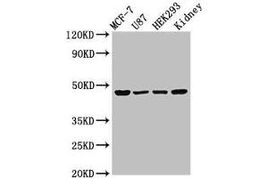 Aliases: 5330426P09Rik antibody, 9030416C10Rik antibody, Aberrant WW domain-containing oxidoreductase antibody, D16S432E antibody, EC 1.1.1.- antibody, EIEE28 antibody, FOR antibody, FRA16D antibody, Fragile site FRA16D oxidoreductase antibody, Fragile site FRA16D Oxireductase antibody, HHCMA56 antibody, MGC55975 antibody, PRO0128 antibody, Putative oxidoreductase antibody, SCAR12 antibody, SDR41C1 antibody, Short chain dehydrogenase/reductase family 41C, member 1 antibody, WOX1 antibody, WW domain containing oxidoreductase antibody, WW domain-containing oxidoreductase antibody, WW domain-containing protein WWOX antibody, wwox antibody, WWOX_HUMAN antibody, zgc:55975 antibody