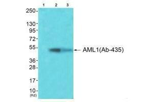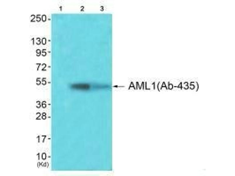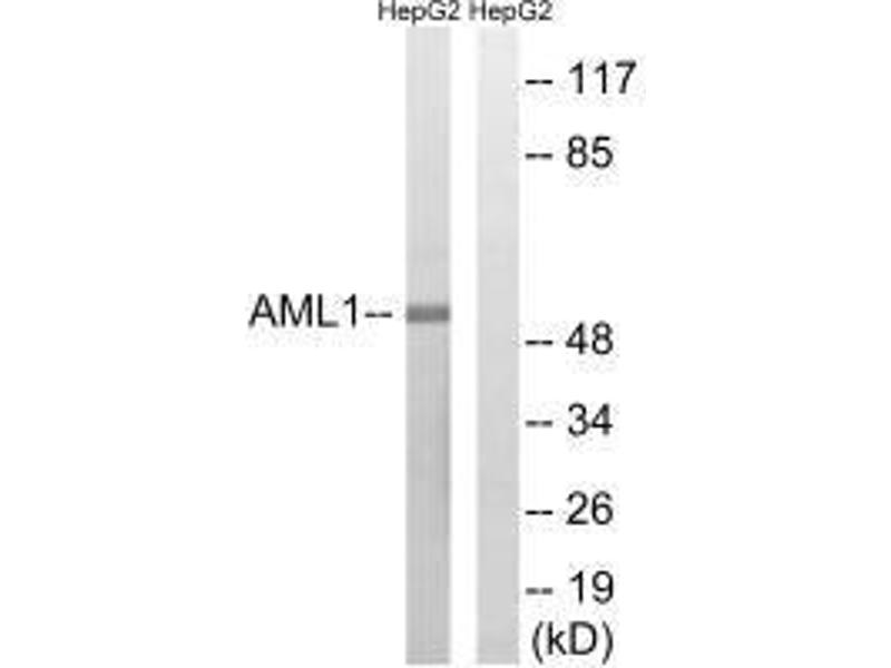 Nucifora G., Blood 81:2728-2734(1993).Aliases: Acute myeloid leukemia 1 antibody, Acute myeloid leukemia 1 protein antibody, alpha subunit core binding factor antibody, AML 1 antibody, AML1 antibody, AML1 EVI 1 antibody, AML1 EVI 1 fusion protein antibody, Aml1 oncogene antibody, AMLCR 1 antibody, AMLCR1 antibody, CBF alpha 2 antibody, CBF-alpha-2 antibody, CBFA 2 antibody, CBFA2 antibody, Core binding factor alpha 2 subunit antibody, Core binding factor runt domain alpha subunit 2 antibody, Core-binding factor subunit alpha-2 antibody, EVI 1 antibody, EVI1 antibody, HGNC antibody, Oncogene AML 1 antibody, Oncogene AML-1 antibody, OTTHUMP00000108696 antibody, OTTHUMP00000108697 antibody, OTTHUMP00000108699 antibody, OTTHUMP00000108700 antibody, OTTHUMP00000108702 antibody, PEA2 alpha B antibody, PEA2-alpha B antibody, PEBP2 alpha B antibody, PEBP2-alpha B antibody, PEBP2A2 antibody, PEBP2aB antibody, Polyomavirus enhancer binding protein 2 alpha B subunit antibody, Polyomavirus enhancer-binding protein 2 alpha B subunit antibody, Run1 antibody, Runt related transcription factor 1 antibody, Runt-related transcription factor 1 antibody, RUNX 1 antibody, Runx1 antibody, RUNX1_HUMAN antibody, SL3 3 enhancer factor 1 alpha B subunit antibody, SL3-3 enhancer factor 1 alpha B subunit antibody, SL3/AKV core binding factor alpha B subunit antibody, SL3/AKV core-binding factor alpha B subunit antibody