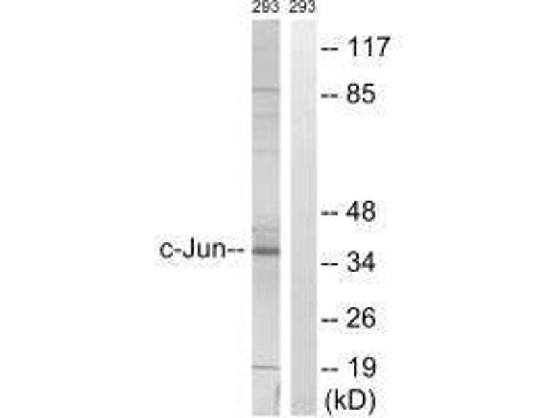 Aliases: Activator protein 1 antibody, AP 1 antibody, AP-1 antibody, AP1 antibody, cJun antibody, Enhancer Binding Protein AP1 antibody, Jun Activation Domain Binding Protein antibody, JUN antibody, Jun oncogene antibody, JUN protein antibody, Jun proto oncogene antibody, JUN_HUMAN antibody, JUNC antibody, Oncogene JUN antibody, p39 antibody, Proto oncogene c jun antibody, Proto oncogene cJun antibody, Proto-oncogene c-jun antibody, Transcription Factor AP 1 antibody, Transcription factor AP-1 antibody, Transcription Factor AP1 antibody, V jun avian sarcoma virus 17 oncogene homolog antibody, V jun sarcoma virus 17 oncogene homolog (avian) antibody, V jun sarcoma virus 17 oncogene homolog antibody, V-jun avian sarcoma virus 17 oncogene homolog antibody, vJun Avian Sarcoma Virus 17 Oncogene Homolog antibody