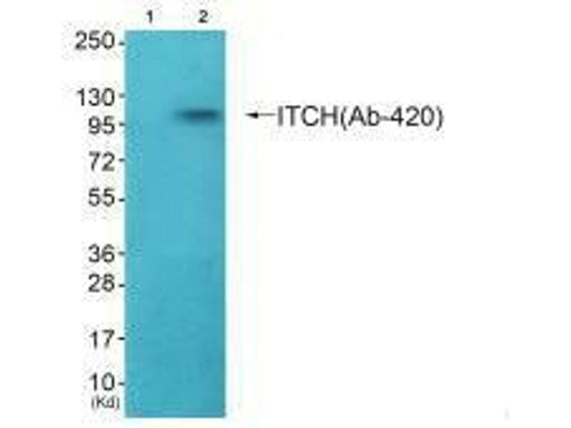 Wood J.D., Mol. Cell. Neurosci. 11:149-160(1998).Aliases: ADMFD antibody, AIF4 antibody, AIP4 antibody, Atrophin 1 interacting protein 4 antibody, Atrophin-1-interacting protein 4 antibody, dJ468O1.1 antibody, dJ468O1.1 (atrophin 1 interacting protein 4 (AIP4)) antibody, dJ468O1.1 atrophin 1 interacting protein 4 AIP4 antibody, E3 ubiquitin protein ligase Itchy homolog antibody, E3 ubiquitin-protein ligase Itchy homolog antibody, EC 6.3.2 antibody, Itch antibody, ITCH_HUMAN antibody, Itchy E3 ubiquitin protein ligase antibody, Itchy E3 ubiquitin protein ligase homolog antibody, Itchy E3 ubiquitin protein ligase homolog mouse antibody, Itchy E3 ubiquitin protein ligase, mouse, homolog of antibody, Itchy homolog E3 ubiquitin protein ligase antibody, Itchy mouse homolog E3 ubiquitin protein ligase antibody, NAPP1 antibody, NFE2 associated polypeptide 1 antibody, NFE2-associated polypeptide 1 antibody, Ubiquitin protein ligase ITCH antibody