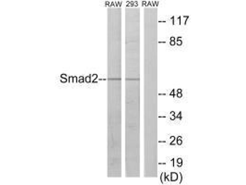 Eppert K., Cell 86:543-552(1996).Aliases: Drosophila, homolog of, MADR2 antibody, hMAD-2 antibody, HsMAD2 antibody, JV18 antibody, JV18-1 antibody, JV181 antibody, MAD antibody, MAD homolog 2 antibody, MAD Related Protein 2 antibody, Mad-related protein 2 antibody, MADH2 antibody, MADR2 antibody, MGC22139 antibody, MGC34440 antibody, Mother against DPP homolog 2 antibody, Mothers against decapentaplegic homolog 2 antibody, Mothers against decapentaplegic, Drosophila, homolog of, 2 antibody, Mothers against DPP homolog 2 antibody, OTTHUMP00000163489 antibody, Sma and Mad related protein 2 antibody, Sma- and Mad-related protein 2 MAD antibody, SMAD 2 antibody, SMAD family member 2 antibody, SMAD, mothers against DPP homolog 2 antibody, SMAD2 antibody, SMAD2_HUMAN antibody