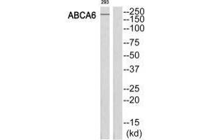 Aliases: ABC transporter ABCA6 antibody, ABCA 6 antibody, ABCA6 antibody, ABCA6_HUMAN antibody, ATP binding cassette A6 antibody, ATP binding cassette sub family A (ABC1) member 6 antibody, ATP binding cassette sub family A member 6 antibody, ATP-binding cassette sub-family A member 6 antibody, EST155051 antibody, FLJ43498 antibody
