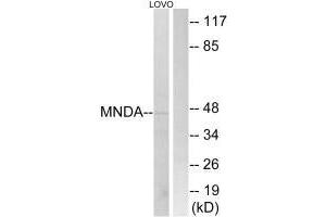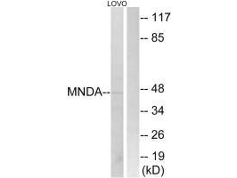 Burrus G.R., J. Cell. Biochem. 48:190-202(1992).Aliases: MNDA antibody, MNDA_HUMAN antibody, Myeloid cell nuclear differentiation antigen antibody, OTTHUMP00000024384 antibody, PYHIN3 antibody
