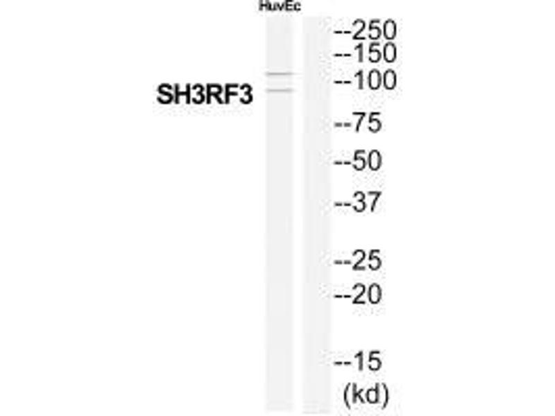 Jikuya H., DNA Res. 10:49-57(2003).Aliases: Plenty of SH3s 2 antibody, POSH2 antibody, SH3 domain-containing RING finger protein 3 antibody, SH3 multiple domains protein 4 antibody, SH3MD4 antibody, SH3R3_HUMAN antibody, SH3RF3 antibody