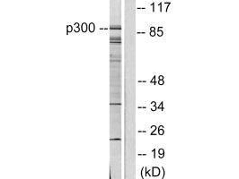 Frederick C. Nucifora, Science, Mar 2001, 291: 2423.Aliases: E1A associated protein p300 antibody, E1A binding protein p300 antibody, E1A-associated protein p300 antibody, EP300 antibody, EP300: E1A binding protein p300 antibody, EP300_HUMAN antibody, Histone acetyltransferase p300 antibody, KAT3B antibody, p300 HAT antibody, RSTS2 antibody