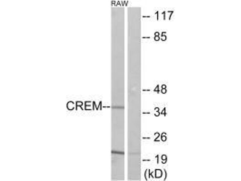 Fujimoto T., J. Biochem. 115:298-303(1994).Aliases: cAMP response element modulator antibody, cAMP responsive element modulator antibody, cAMP-responsive element modulator antibody, CREM antibody, CREM-2 antibody, CREM_HUMAN antibody, hCREM 2 antibody, hCREM-2 antibody, hCREM2 antibody, ICER antibody, Inducible cAMP early repressor antibody, Inducible cAMP early repressor ICER antibody, MGC111110 antibody, MGC17881 antibody, MGC41893 antibody
