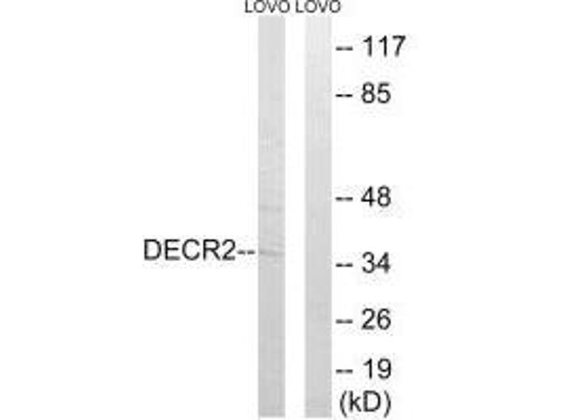 Ota T., Nat. Genet. 36:40-45(2004).Aliases: 2 4 dienoyl CoA reductase 2 antibody, 2 4 dienoyl CoA reductase 2 peroxisomal antibody, 2 antibody, 4-dienoyl-CoA reductase 2 antibody, 4-dienoyl-CoA reductase antibody, DECR 2 antibody, Decr2 antibody, DECR2_HUMAN antibody, EC 1.3.1.34 antibody, pDCR antibody, Peroxisomal 2 4 dienoyl CoA reductase antibody, Peroxisomal 2 antibody, SDR17C1 antibody, Short chain dehydrogenase/reductase family 17C member 1 antibody