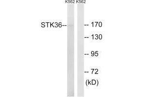 Hillier L.W., Nature 434:724-731(2005).Aliases: FU antibody, Fused homolog antibody, KIAA1278 antibody, Serine/threonine kinase 36, fused homolog antibody, Serine/threonine protein kinase 36 fused homolog antibody, Serine/threonine-protein kinase 36 antibody, STK36 antibody, STK36_HUMAN antibody