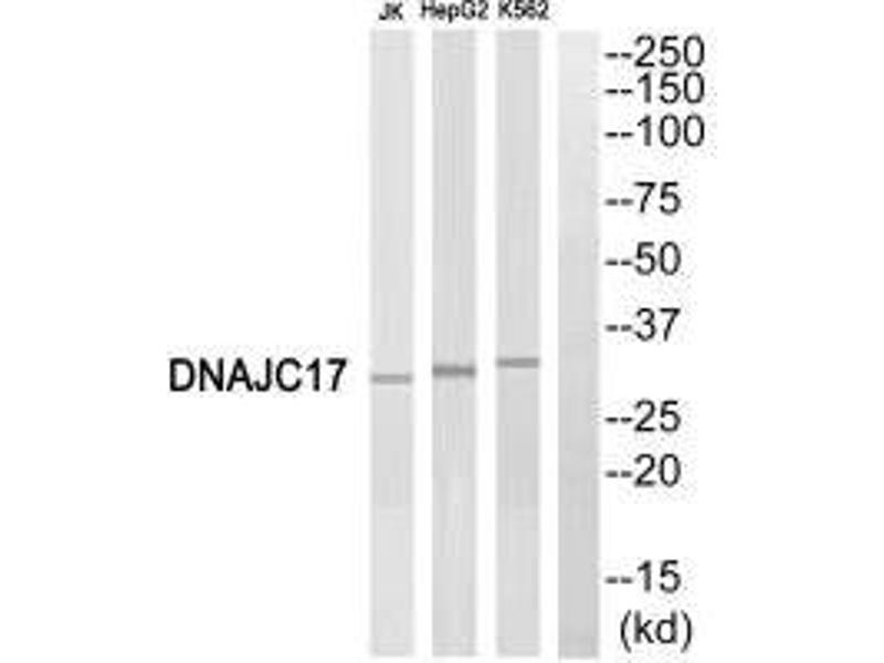Olsen J.V., Cell 127:635-648(2006).Aliases: DJC17_HUMAN antibody, DnaJ (Hsp40) homolog subfamily C member 17 antibody, DnaJ homolog subfamily C member 17 antibody, DNAJC 17 antibody, DNAJC17 antibody, FLJ10634 antibody