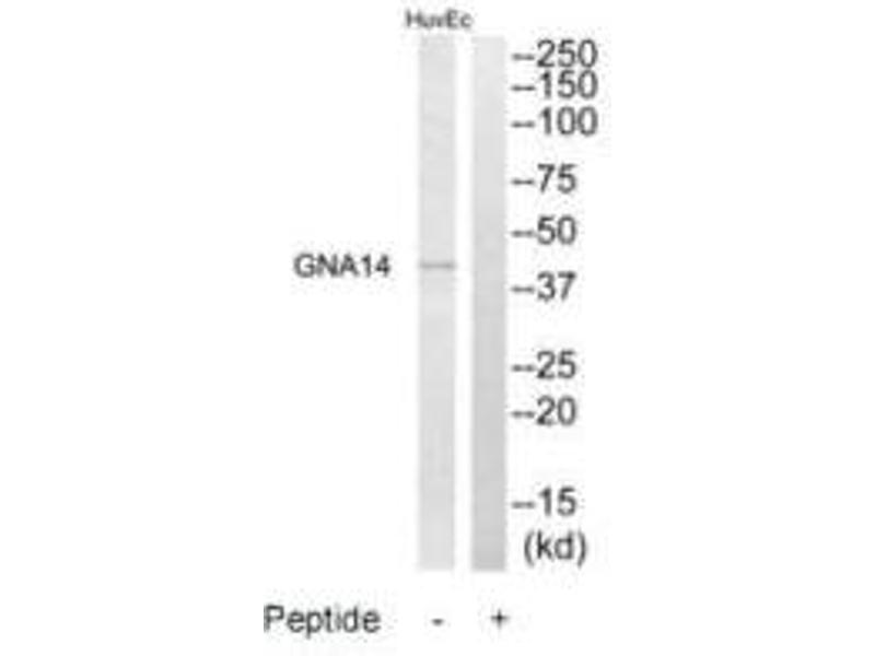 The MGC Project Team, Genome Res. 14:2121-2127(2004).Aliases: AU023208 antibody, g alpha 14 antibody, G alpha-14 antibody, G protein alpha subunit 14 antibody, G protein subunit alpha 14 antibody, G-protein subunit alpha-14 antibody, gna14 antibody, GNA14_HUMAN antibody, Guanine nucleotide binding protein (G protein) alpha 14 antibody, Guanine nucleotide binding protein 14 antibody, Guanine nucleotide binding protein alpha 14 subunit antibody, Guanine nucleotide binding protein subunit alpha 14 antibody, Guanine nucleotide-binding protein subunit alpha-14 antibody, MGC105546 antibody, OTTHUMP00000021515 antibody, Tieg3 antibody