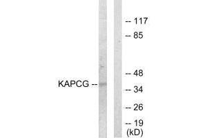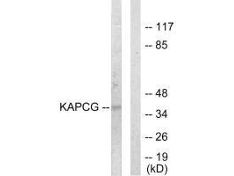 The MGC Project Team, Genome Res. 14:2121-2127(2004).Aliases: cAMP-dependent protein kinase catalytic subunit gamma antibody, KAPCG_HUMAN antibody, KAPG antibody, PKA C gamma antibody, PKA C-gamma antibody, PKACg antibody, PRKACG antibody, Protein kinase cAMP dependent catalytic gamma antibody, Serine (threonine) protein kinase antibody