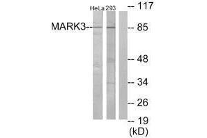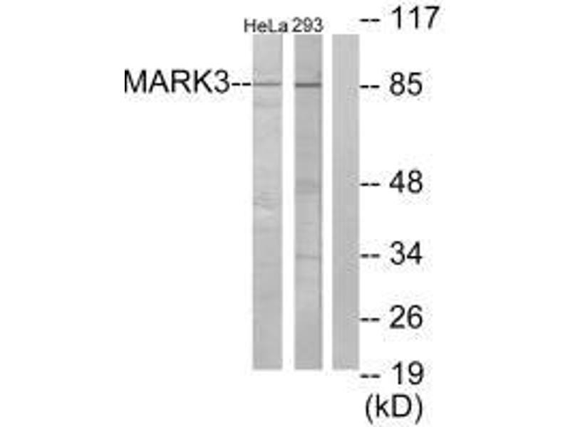 Wissing J., Mol. Cell. Proteomics 6:537-547(2007)Aliases: C-TAK1 antibody, Cdc25C associated protein kinase 1 antibody, Cdc25C-associated protein kinase 1 antibody, cTAK1 antibody, ELKL motif kinase 2 antibody, EMK-2 antibody, Emk2 antibody, ETK 1 antibody, KIAA4230 antibody, KP78 antibody, MAP microtubule affinity regulating kinase 3 antibody, MAP/microtubule affinity-regulating kinase 3 antibody, Mark3 antibody, MARK3_HUMAN antibody, Par 1a antibody, PAR1A antibody, Protein kinase STK10 antibody, Ser/Thr protein kinase PAR-1 antibody, Serine threonine protein kinase p78 antibody, Serine/threonine-protein kinase p78 antibody, SerThr protein kinase PAR 1 antibody