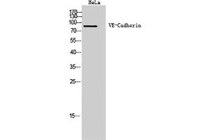 - VE-Cadherin Polyclonal Antibody detects endogenous levels of VE-Cadherin protein.
