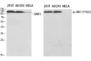 - Phospho-JAK1 (Y1022) Polyclonal Antibody detects endogenous levels of JAK1 protein only when phosphorylated at Y1022.