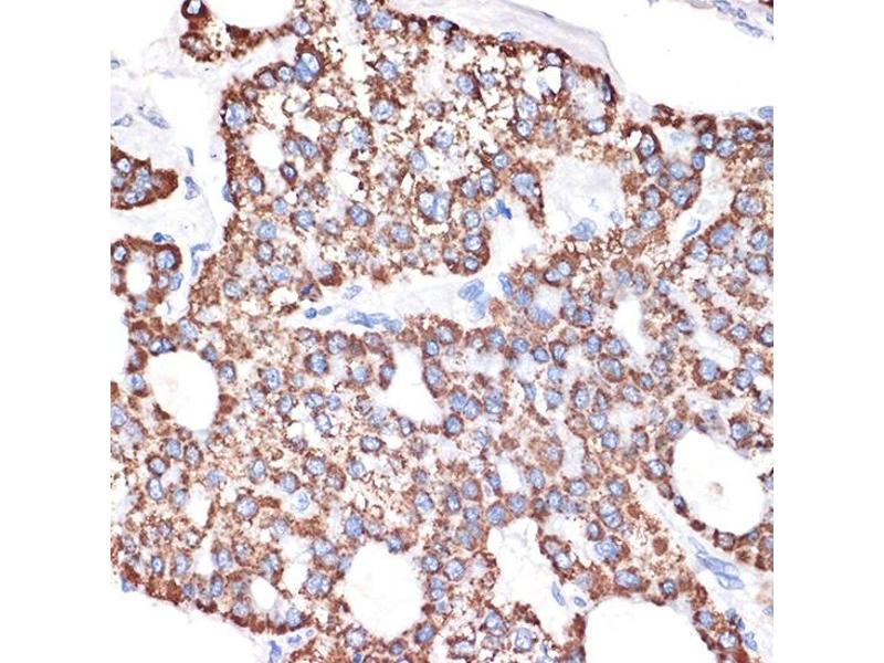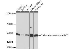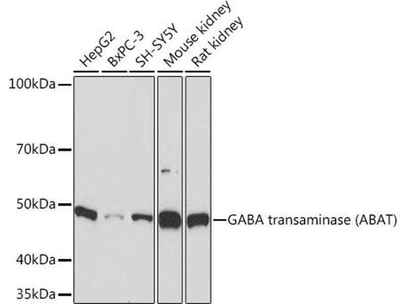 - 4-aminobutyrate aminotransferase (ABAT) is responsible for catabolism of gamma-aminobutyric acid (GABA), an important, mostly inhibitory neurotransmitter in the central nervous system, into succinic semialdehyde. The active enzyme is a homodimer of 50-kD subunits complexed to pyridoxal-5-phosphate. The protein sequence is over 95 % similar to the pig protein. GABA is estimated to be present in nearly one-third of human synapses. ABAT in liver and brain is controlled by 2 codominant alleles with a frequency in a Caucasian population of 0.56 and 0.44. The ABAT deficiency phenotype includes psychomotor retardation, hypotonia, hyperreflexia, lethargy, refractory seizures, and EEG abnormalities. Multiple alternatively spliced transcript variants encoding the same protein isoform have been found for this gene. [provided by RefSeq, Jul 2008],GABA-AT, GABAT, NPD009,Amino acid metabolism,Cancer,Endocrine & Metabolism,Mitochondrial metabolism,Mitochondrial metabolism_Mitochondrial markers,Neurodegenerative Diseases Markers,Neuroscience,Other Neurological disorders,Signal Transduction,ABAT