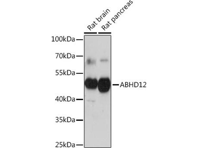 Der Kaninchen Polyklonal anti-ABHD12 Antikörper (ABIN7265355) detektiert spezifisch ABHD12 in WB.