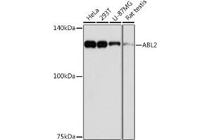 This gene encodes a member of the Abelson family of nonreceptor tyrosine protein kinases. The protein is highly similar to the c-abl oncogene 1 protein, including the tyrosine kinase, SH2 and SH3 domains, and it plays a role in cytoskeletal rearrangements through its C-terminal F-actin- and microtubule-binding sequences. This gene is expressed in both normal and tumor cells, and is involved in translocation with the ets variant 6 gene in leukemia. Multiple alternatively spliced transcript variants encoding different protein isoforms have been found for this gene. [provided by RefSeq, Nov 2009],ABLL, ARG,Cancer,Kinase,Kinase_Tyrosine kinases,Signal Transduction,ABL2