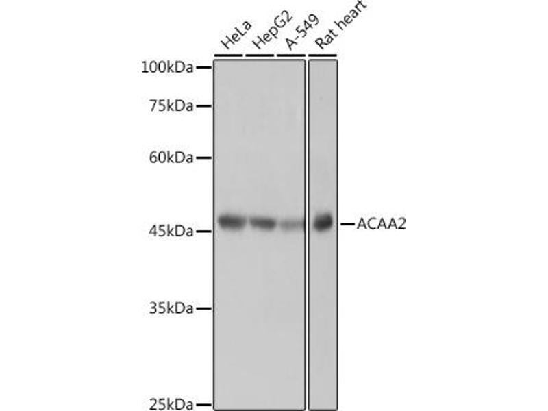The encoded protein catalyzes the last step of the mitochondrial fatty acid beta-oxidation spiral. Unlike most mitochondrial matrix proteins, it contains a non-cleavable amino-terminal targeting signal.,ACAA2, DSAEC, acetyl-CoA acyltransferase 2,Epigenetics & Nuclear Signaling,RNA Binding,Signal Transduction,Endocrine & Metabolism,Mitochondrial metabolism,Mitochondrial markers,Lipid Metabolism,Cholesterol Metabolism,Cardiovascular,Lipids,Fatty Acids,ACAA2
