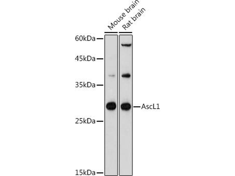 Der Kaninchen Polyklonal anti-ASCL1 Antikörper (ABIN7265373) detektiert spezifisch ASCL1 in WB.