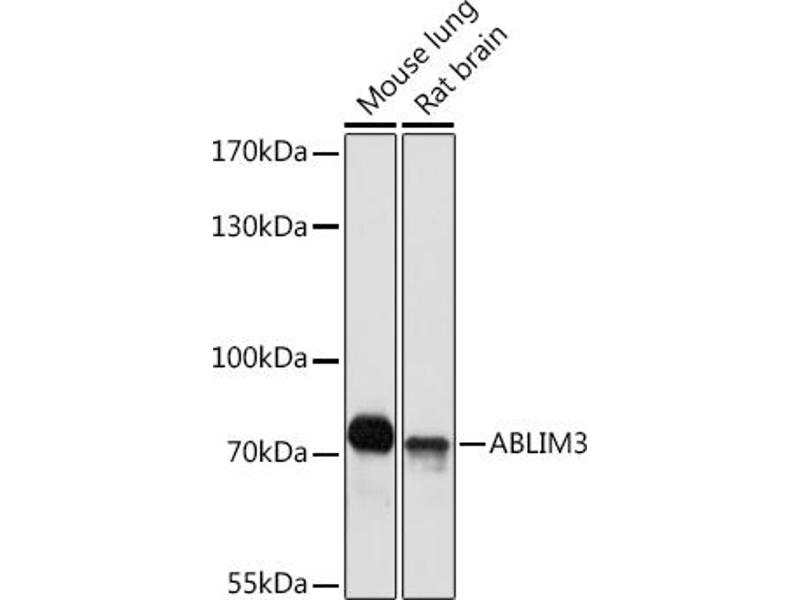 This gene encodes a member of the actin-binding LIM (abLIM) family of proteins. These proteins are characterized by an N-terminal LIM domain and a C-terminal dematin-like domain. The encoded protein interacts with actin filaments and may be a component of adherens junctions in several cell types. A variant of this gene may be associated with pain sensitivity in male human patients. [provided by RefSeq, Sep 2016],HMFN1661,ABLIM3,Signal Transduction,Cell Biology & Developmental Biology,Cytoskeleton,Microfilaments,ABLIM3