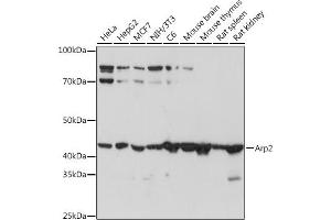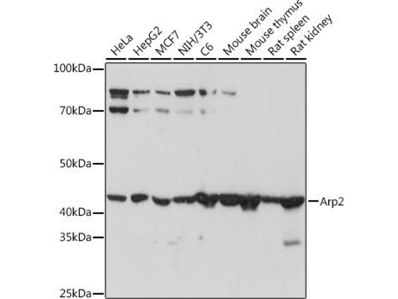 The specific function of this gene has not yet been determined, however, the protein it encodes is known to be a major constituent of the ARP2/3 complex. This complex is located at the cell surface and is essential to cell shape and motility through lamellipodial actin assembly and protrusion. Two transcript variants encoding different isoforms have been found for this gene. [provided by RefSeq, Jul 2008],ARP2,Cancer,Cell Adhesion,Cell Biology & Developmental Biology,Cytoskeleton,Cytoskeleton_Actins,Cytoskeleton_Microfilaments,Immunology & Inflammation,Invasion and Metastasis,Signal Transduction,ACTR2