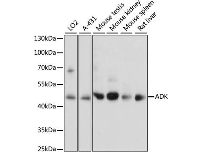 This gene an enzyme which catalyzes the transfer of the gamma-phosphate from ATP to adenosine, thereby serving as a regulator of concentrations of both extracellular adenosine and intracellular adenine nucleotides. Adenosine has widespread effects on the cardiovascular, nervous, respiratory, and immune systems and inhibitors of the enzyme could play an important pharmacological role in increasing intravascular adenosine concentrations and acting as anti-inflammatory agents. Multiple transcript variants encoding different isoforms have been found for this gene.,ADK,AK,Epigenetics & Nuclear Signaling,RNA Binding,Cancer,Signal Transduction,Endocrine & Metabolism,ADK