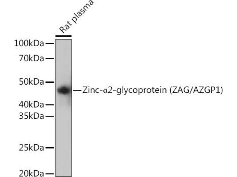 Zinc-α-2-Glycoprotein (AZGP1) can be found in blood plasma, seminal plasma, urine, sweat, saliva, liver, and epithelial cells of various human glands. AZGP1 has been proposed in the regulation of body weight, and the melanin production by normal and malignant melanocytes. AZGP1 stimulates lipid degradation in adipocytes and causes the extensive fat losses associated with some advanced cancers. AZGP1 has been reported to stimulate lipid breakdown and may have an important role in lipid homeostasis. Mature human AZGP1 consists of one MHC class I antigen region and a C2-type Ig-like domain. AZGP1 has two alternate splice forms, one shows a 66 amino acids substitution for the C-terminal 30 amino acids, the other one shows a nine Lys substitution for amino acid 151-298.,ZA2G, ZAG,Cell Intrinsic Innate Immunity Signaling Pathway,Cytokines,Endocrine & Metabolism,Immunology & Inflammation,Lipid Metabolism,Signal Transduction,AZGP1