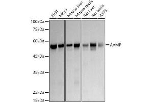 The gene is a member of the immunoglobulin superfamily. The encoded protein is associated with angiogenesis, with potential roles in endothelial tube formation and the migration of endothelial cells. It may also regulate smooth muscle cell migration via the RhoA pathway. The encoded protein can bind to heparin and may mediate heparin-sensitive cell adhesion.,AAMP,Cardiovascular,Angiogenesis,AAMP