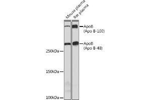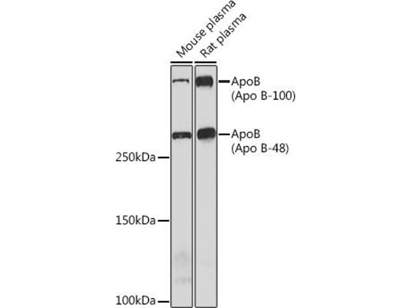 This gene product is the main apolipoprotein of chylomicrons and low density lipoproteins. It occurs in plasma as two main isoforms, apoB-48 and apoB-100: the former is synthesized exclusively in the gut and the latter in the liver. The intestinal and the hepatic forms of apoB are encoded by a single gene from a single, very long mRNA. The two isoforms share a common N-terminal sequence. The shorter apoB-48 protein is produced after RNA editing of the apoB-100 transcript at residue 2180 (CAA->UAA), resulting in the creation of a stop codon, and early translation termination. Mutations in this gene or its regulatory region cause hypobetalipoproteinemia, normotriglyceridemic hypobetalipoproteinemia, and hypercholesterolemia due to ligand-defective apoB, diseases affecting plasma cholesterol and apoB levels. [provided by RefSeq, Jul 2008],FLDB, LDLCQ4, apoB-100, apoB-48,Cancer,Cardiovascular,Cardiovascular diseases,Cardiovascular diseases_Heart disease,Endocrine & Metabolism,Heart,Lipid Metabolism,Lipid Metabolism_Cholesterol Metabolism,Lipids,Lipids_Lipoproteins/Apolipoproteins,Signal Transduction,APOB