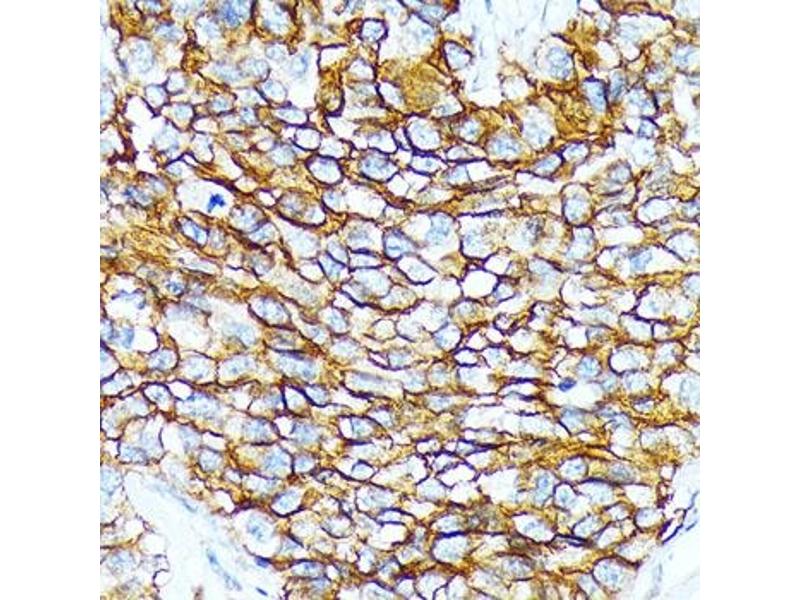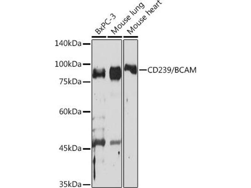This gene encodes Lutheran blood group glycoprotein, a member of the immunoglobulin superfamily and a receptor for the extracellular matrix protein, laminin. The protein contains five extracellular immunoglobulin domains, a single transmembrane domain, and a short C-terminal cytoplasmic tail. This protein may play a role in epithelial cell cancer and in vaso-occlusion of red blood cells in sickle cell disease. Polymorphisms in this gene define some of the antigens in the Lutheran system and also the Auberger system. Inactivating variants of this gene result in the recessive Lutheran null phenotype, Lu(a-b-), of the Lutheran blood group. Two transcript variants encoding different isoforms have been found for this gene. [provided by RefSeq, May 2012],AU, CD239, LU, MSK19,Blood,Blood_Blood Cell Antigens,Cardiovascular,CDs,Immunology & Inflammation,BCAM