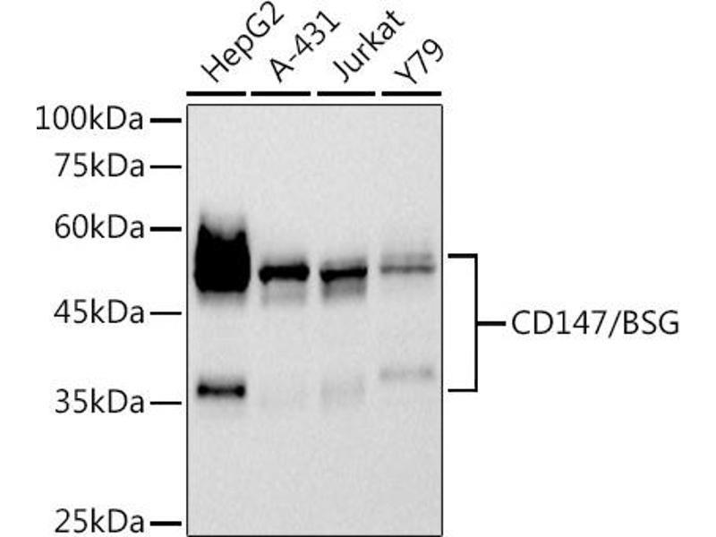 The protein encoded by this gene is a plasma membrane protein that is important in spermatogenesis, embryo implantation, neural network formation, and tumor progression. The encoded protein is also a member of the immunoglobulin superfamily. Multiple transcript variants encoding different isoforms have been found for this gene. [provided by RefSeq, Jul 2008],5F7, CD147, EMMPRIN, OK, TCSF,Cancer,Carbohydrate metabolism,CDs,Cell Biology & Developmental Biology,Cell Type Marker,Endocrine & Metabolism,Extracellular Matrix,Immunology & Inflammation,Invasion and Metastasis,Neuroscience,BSG