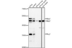 The oncogene BCL2 is a membrane protein that blocks a step in a pathway leading to apoptosis or programmed cell death. The protein encoded by this gene binds to BCL2 and is referred to as BCL2-associated athanogene. It enhances the anti-apoptotic effects of BCL2 and represents a link between growth factor receptors and anti-apoptotic mechanisms. Multiple protein isoforms are encoded by this mRNA through the use of a non-AUG (CUG) initiation codon, and three alternative downstream AUG initiation codons. A related pseudogene has been defined on chromosome X.,BAG1,BAG-1,HAP,RAP46,Cancer,Invasion and Metastasis,Cell Biology & Developmental Biology,Apoptosis,Bcl 2 family,Autophagy,Endocrine & Metabolism,Cardiovascular,Heart,Bag1