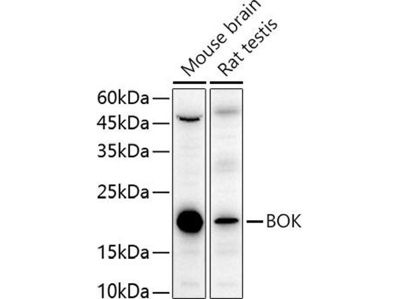 The protein encoded by this gene belongs to the BCL2 family, members of which form homo- or heterodimers, and act as anti- or proapoptotic regulators that are involved in a wide variety of cellular processes. Studies in rat show that this protein has restricted expression in reproductive tissues, interacts strongly with some antiapoptotic BCL2 proteins, not at all with proapoptotic BCL2 proteins, and induces apoptosis in transfected cells. Thus, this protein represents a proapoptotic member of the BCL2 family.,BOK,BCL2L9,BOKL,Cancer,Tumor suppressors,p53 pathway,Cell Biology & Developmental Biology,Apoptosis,BOK