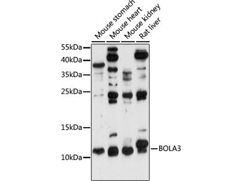 This gene encodes a protein that plays an essential role in the production of iron-sulfur (Fe-S) clusters for the normal maturation of lipoate-containing 2-oxoacid dehydrogenases, and for the assembly of the mitochondrial respiratory chain complexes. Mutation in this gene has been associated with multiple mitochondrial dysfunctions syndrome-2. Two alternatively spliced transcript variants encoding different isoforms with distinct subcellular localization have been reported for this gene (PMID:21944046).,BOLA3,MMDS2,Signal Transduction,Endocrine & Metabolism,Mitochondrial metabolism,Oxidative phosphorylation,BOLA3
