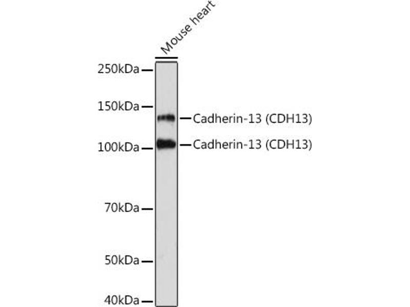 This gene encodes a member of the cadherin superfamily. The encoded protein is localized to the surface of the cell membrane and is anchored by a GPI moiety, rather than by a transmembrane domain. The protein lacks the cytoplasmic domain characteristic of other cadherins, and so is not thought to be a cell-cell adhesion glycoprotein. This protein acts as a negative regulator of axon growth during neural differentiation. It also protects vascular endothelial cells from apoptosis due to oxidative stress, and is associated with resistance to atherosclerosis. The gene is hypermethylated in many types of cancer. Alternative splicing results in multiple transcript variants encoding different isoforms. [provided by RefSeq, May 2011],CDHH, P105,Calcium Signaling,Cancer,Cell Adhesion,Cell Adhesion_Cadherins,Cell Biology & Developmental Biology,Cell Cycle,Cell Cycle_Centrosome,Cytoskeleton,Invasion and Metastasis,Neuroscience,Signal Transduction,CDH13