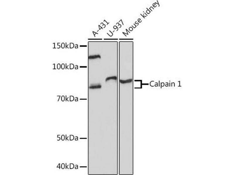 The calpains, calcium-activated neutral proteases, are nonlysosomal, intracellular cysteine proteases. The mammalian calpains include ubiquitous, stomach-specific, and muscle-specific proteins. The ubiquitous enzymes consist of heterodimers with distinct large, catalytic subunits associated with a common small, regulatory subunit. This gene encodes the large subunit of the ubiquitous enzyme, calpain 1. Several transcript variants encoding two different isoforms have been found for this gene. [provided by RefSeq, Nov 2010],CANP, CANP1, CANPL1, SPG76, muCANP, muCL,Apoptosis,Calcium Signaling,Cell Biology & Developmental Biology,Immunology & Inflammation,Neurodegenerative Diseases,Neurodegenerative Diseases_Amyloid Plaque and Neurofibrillary Tangle Formation in Alzheimers Disease,Neuroscience,Signal Transduction,T Cell Receptor Signaling Pathway,Ubiquitin,CAPN1