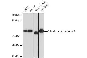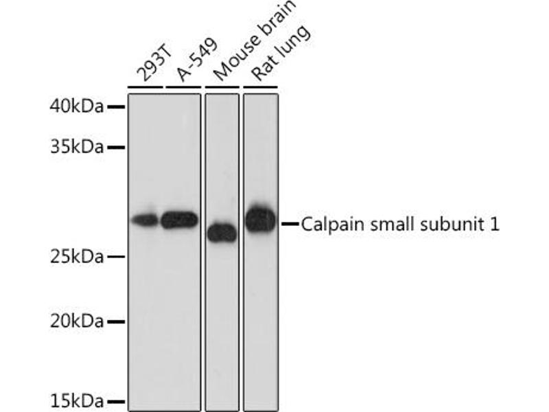 This gene is a member of the calpain small subunit family. Calpains are calcium-dependent cysteine proteinases that are widely distributed in mammalian cells. Calpains operate as heterodimers, comprising a specific large catalytic subunit (calpain 1 subunit in Calpain I, and calpain 2 subunit in Calpain II), and a common small regulatory subunit encoded by this gene. This encoded protein is essential for the stability and function of both calpain heterodimers, whose proteolytic activities influence various cellular functions including apoptosis, proliferation, migration, adhesion, and autophagy. Calpains have been implicated in neurodegenerative processes, such as myotonic dystrophy. A pseudogene of this gene has been defined on chromosome 1. Alternative splicing results in multiple transcript variants. [provided by RefSeq, Oct 2014],CALPAIN4, CANP, CANPS, CAPN4, CDPS, CSS1,Calcium Signaling,Immunology & Inflammation,Neuroscience,Signal Transduction,T Cell Receptor Signaling Pathway,CAPNS1