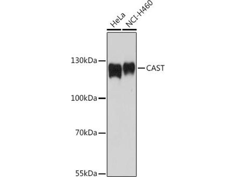 The protein encoded by this gene is an endogenous calpain (calcium-dependent cysteine protease) inhibitor. It consists of an N-terminal domain L and four repetitive calpain-inhibition domains (domains 1-4), and it is involved in the proteolysis of amyloid precursor protein. The calpain/calpastatin system is involved in numerous membrane fusion events, such as neural vesicle exocytosis and platelet and red-cell aggregation. The encoded protein is also thought to affect the expression levels of genes encoding structural or regulatory proteins. Alternatively spliced transcript variants encoding different isoforms have been described.,CAST,BS-17,PLACK,Epigenetics & Nuclear Signaling,RNA Binding,Cell Biology & Developmental Biology,Ubiquitin,Neuroscience,Cell Type Marker,Neurodegenerative Diseases,Amyloid Plaque and Neurofibrillary Tangle Formation in Alzheimer's Disease,Neuron marker,Synapse marker,CAST