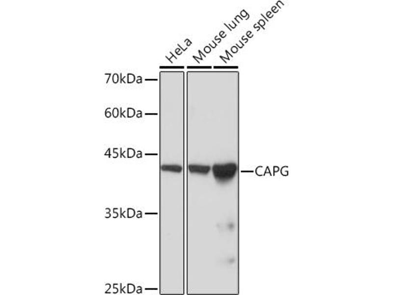 This gene encodes a member of the gelsolin/villin family of actin-regulatory proteins. The encoded protein reversibly blocks the barbed ends of F-actin filaments in a Ca2+ and phosphoinositide-regulated manner, but does not sever preformed actin filaments. By capping the barbed ends of actin filaments, the encoded protein contributes to the control of actin-based motility in non-muscle cells. Alternatively spliced transcript variants have been observed for this gene. [provided by RefSeq, Jan 2012],AFCP, HEL-S-66, MCP,Cell Biology & Developmental Biology,Cell Intrinsic Innate Immunity Signaling Pathway,Cytoskeleton,Cytoskeleton_Microfilaments,Immunology & Inflammation,Signal Transduction,CAPG