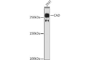 The de novo synthesis of pyrimidine nucleotides is required for mammalian cells to proliferate. This gene encodes a trifunctional protein which is associated with the enzymatic activities of the first 3 enzymes in the 6-step pathway of pyrimidine biosynthesis: carbamoylphosphate synthetase (CPS II), aspartate transcarbamoylase, and dihydroorotase. This protein is regulated by the mitogen-activated protein kinase (MAPK) cascade, which indicates a direct link between activation of the MAPK cascade and de novo biosynthesis of pyrimidine nucleotides. Alternative splicing results in multiple transcript variants encoding different isoforms. [provided by RefSeq, Apr 2015],CDG1Z, EIEE50, GATD4,Apoptosis,Cell Biology & Developmental Biology,Cell Cycle,Endocrine & Metabolism,Epigenetics & Nuclear Signaling,Nucleotide metabolism,Protein phosphorylation,CAD