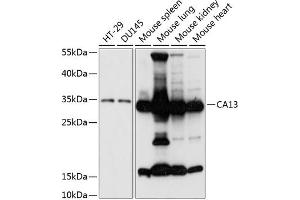 Carbonic anhydrases (CAs) are a family of zinc metalloenzymes. For background information on the CA family, see MIM 114800.,CA13,CAXIII,Cell Biology & Developmental Biology,CA13