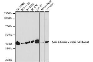 Der Kaninchen-Monoklonal Anti-CSNK2A1/CK II alpha-Antikörper wurde für WB validiert. Er ist geeignet zum Nachweis von CSNK2A1/CK II alpha in Proben aus Human.