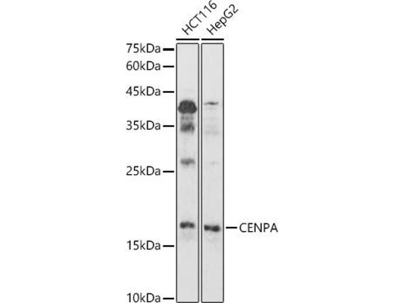 Centromeres are the differentiated chromosomal domains that specify the mitotic behavior of chromosomes. This gene encodes a centromere protein which contains a histone H3 related histone fold domain that is required for targeting to the centromere. Centromere protein A is proposed to be a component of a modified nucleosome or nucleosome-like structure in which it replaces 1 or both copies of conventional histone H3 in the (H3-H4)2 tetrameric core of the nucleosome particle. The protein is a replication-independent histone that is a member of the histone H3 family. Alternative splicing results in multiple transcript variants encoding distinct isoforms.,CENPA,CENP-A,CenH3,Epigenetics & Nuclear Signaling,Histones,Cell Biology & Developmental Biology,Cell Cycle,Centromere,CENPA