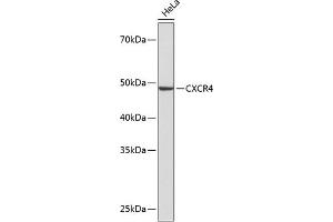 This gene encodes a CXC chemokine receptor specific for stromal cell-derived factor-1. The protein has 7 transmembrane regions and is located on the cell surface. It acts with the CD4 protein to support HIV entry into cells and is also highly expressed in breast cancer cells. Mutations in this gene have been associated with WHIM (warts, hypogammaglobulinemia, infections, and myelokathexis) syndrome. Alternate transcriptional splice variants, encoding different isoforms, have been characterized. [provided by RefSeq, Jul 2008],CD184,D2S201E,FB22,HM89,HSY3RR,LAP-3,LAP3,LCR1,LESTR,NPY3R,NPYR,NPYRL,NPYY3R,WHIM,WHIMS,CXCR4,Angiogenesis,Apoptosis,Cancer,Cardiovascular,CDs,Cell Biology & Developmental Biology,Cell Intrinsic Innate Immunity Signaling Pathway,Endocrine & Metabolism,Endothelial Progenitors,ErbB-HER Signaling Pathway,G protein signaling,G protein signaling_G-Protein-Coupled Receptors(GPCR),Hematopoietic Progenitors,Immunology & Inflammation,Innate Immunity_Chemokines,Neural Stem Cells,Neuroscience,Signal Transduction,Stem Cells,CXCR4