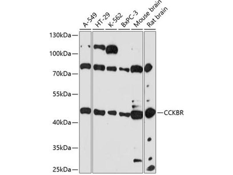 This gene encodes a G-protein coupled receptor for gastrin and cholecystokinin (CCK), regulatory peptides of the brain and gastrointestinal tract. This protein is a type B gastrin receptor, which has a high affinity for both sulfated and nonsulfated CCK analogs and is found principally in the central nervous system and the gastrointestinal tract. Alternative splicing results in multiple transcript variants. A misspliced transcript variant including an intron has been observed in cells from colorectal and pancreatic tumors.,CCKBR,CCK-B,CCK2R,GASR,Signal Transduction,G protein signaling,G-Protein-Coupled Receptors(GPCR),Endocrine & Metabolism,Endocrine and metabolic diseases,Obesity,Neuroscience,CCKBR