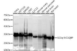 The human complement subcomponent C1q associates with C1r and C1s in order to yield the first component of the serum complement system. The protein encoded by this gene is known to bind to the globular heads of C1q molecules and inhibit C1 activation. This protein has also been identified as the p32 subunit of pre-mRNA splicing factor SF2, as well as a hyaluronic acid-binding protein. [provided by RefSeq, Jul 2008],GC1QBP, HABP1, SF2p32, gC1Q-R, gC1qR, p32,Cell Intrinsic Innate Immunity Signaling Pathway,Immunology & Inflammation,C1QBP