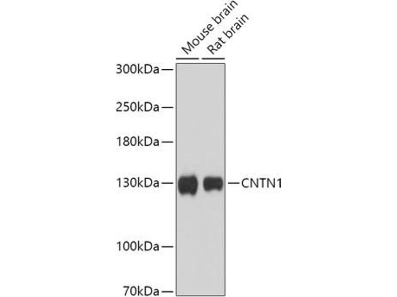 The protein encoded by this gene is a member of the immunoglobulin superfamily. It is a glycosylphosphatidylinositol (GPI)-anchored neuronal membrane protein that functions as a cell adhesion molecule. It may play a role in the formation of axon connections in the developing nervous system. Multiple alternatively spliced transcript variants encoding different isoforms have been found for this gene. [provided by RefSeq, Dec 2011],CNTN1,F3,GP135,MYPCN,Epigenetics & Nuclear Signaling,Cell Biology & Developmental Biology,Cell Adhesion,Neuroscience,CNTN1