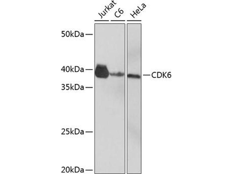 The protein encoded by this gene is a member of the cyclin-dependent protein kinase (CDK) family. CDK family members are highly similar to the gene products of Saccharomyces cerevisiae cdc28, and Schizosaccharomyces pombe cdc2, and are known to be important regulators of cell cycle progression. This kinase is a catalytic subunit of the protein kinase complex that is important for cell cycle G1 phase progression and G1/S transition. The activity of this kinase first appears in mid-G1 phase, which is controlled by the regulatory subunits including D-type cyclins and members of INK4 family of CDK inhibitors. This kinase, as well as CDK4, has been shown to phosphorylate, and thus regulate the activity of, tumor suppressor protein Rb. Expression of this gene is up-regulated in some types of cancer. Multiple alternatively spliced variants, encoding the same protein, have been identified. [provided by RefSeq, Nov 2009],MCPH12, PLSTIRE,Cancer,Cell Biology & Developmental Biology,Cell Cycle,Epigenetics & Nuclear Signaling,G1/S Checkpoint,Kinase,Kinase_Serine/threonine kinases,Protein phosphorylation,Signal Transduction,CDK6